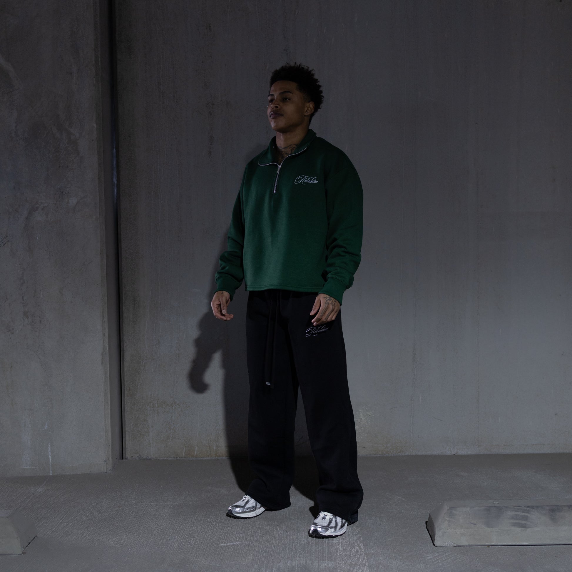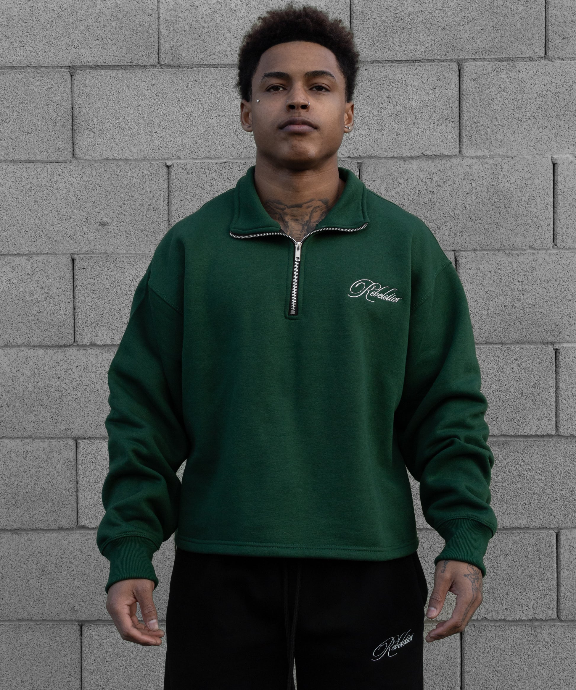 REBELETICS CROPPED QUARTER ZIP - FOREST GREEN