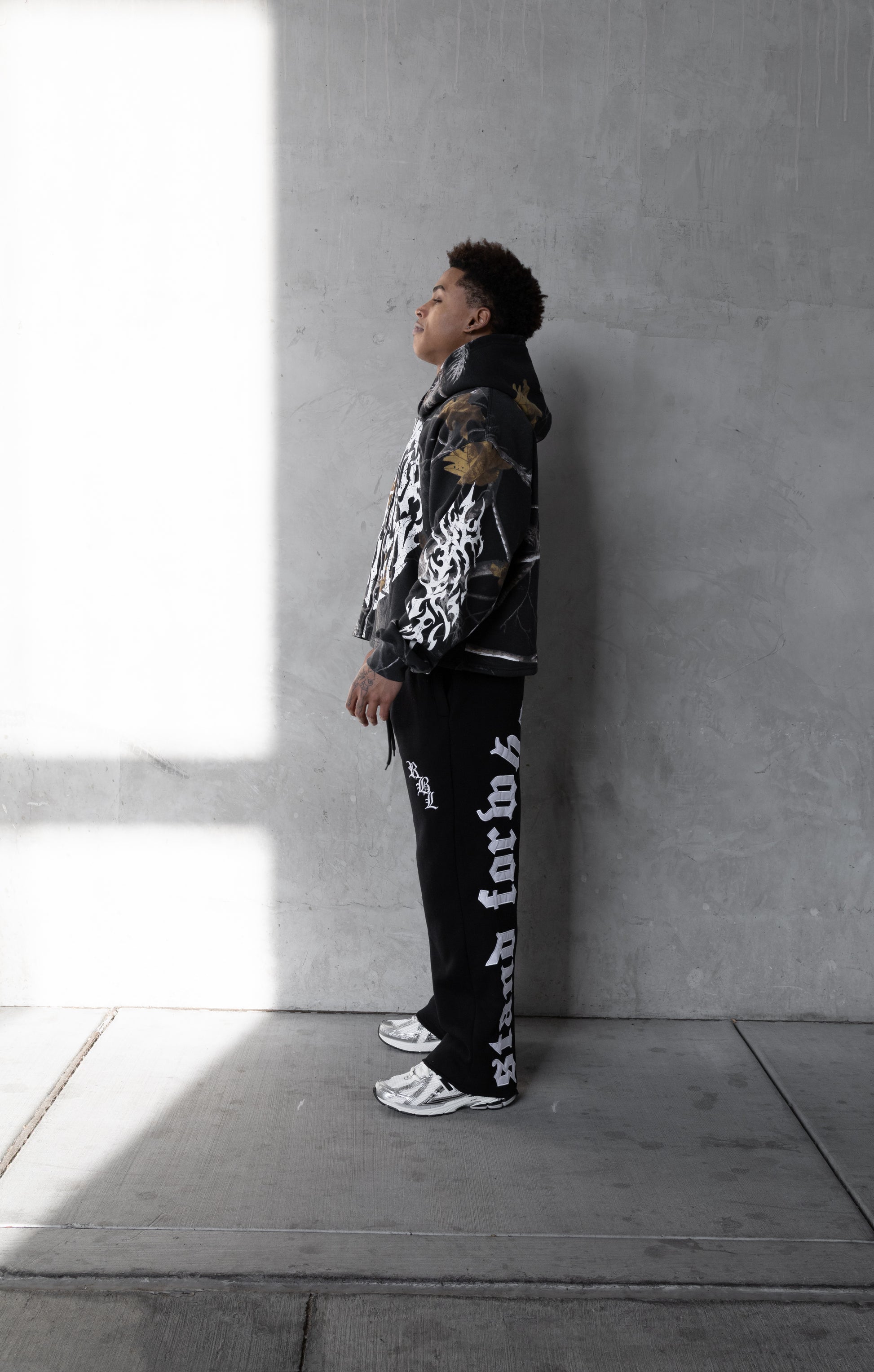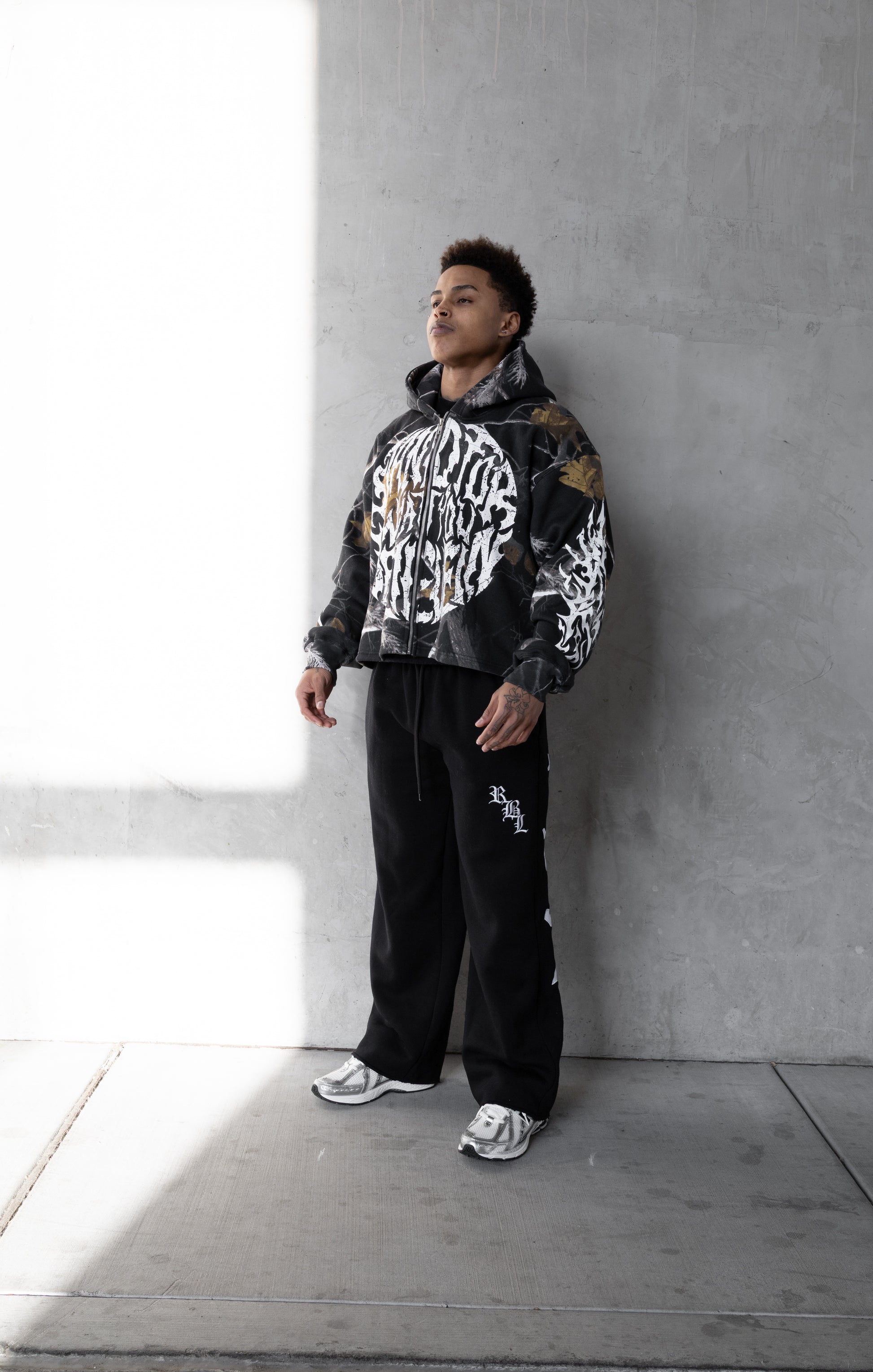 REBELETICS CROPPED ZIP-UP TREE CAMO HOODIE - SHADOW BLACK