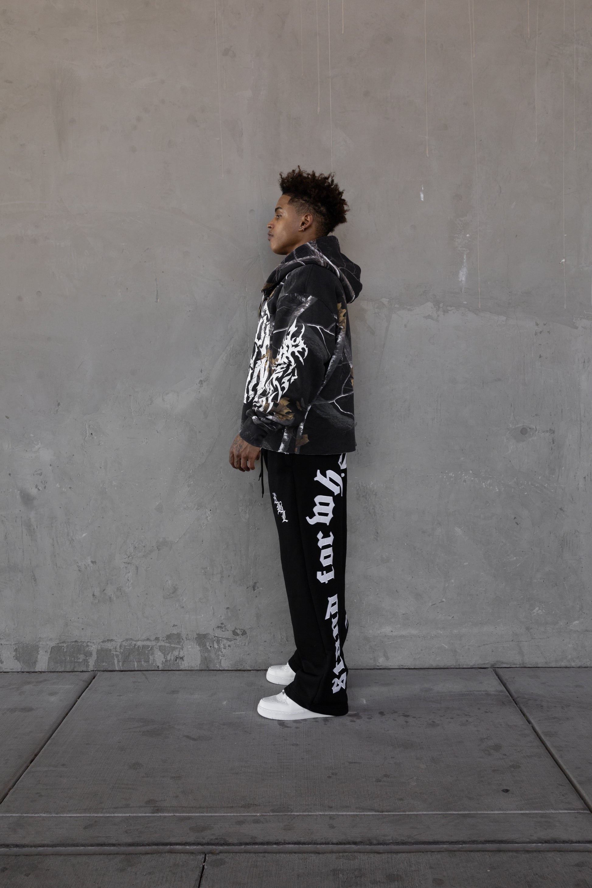 Rebeletics Cropped Zip-Up Hoodie Tree Camo - Shadow Black