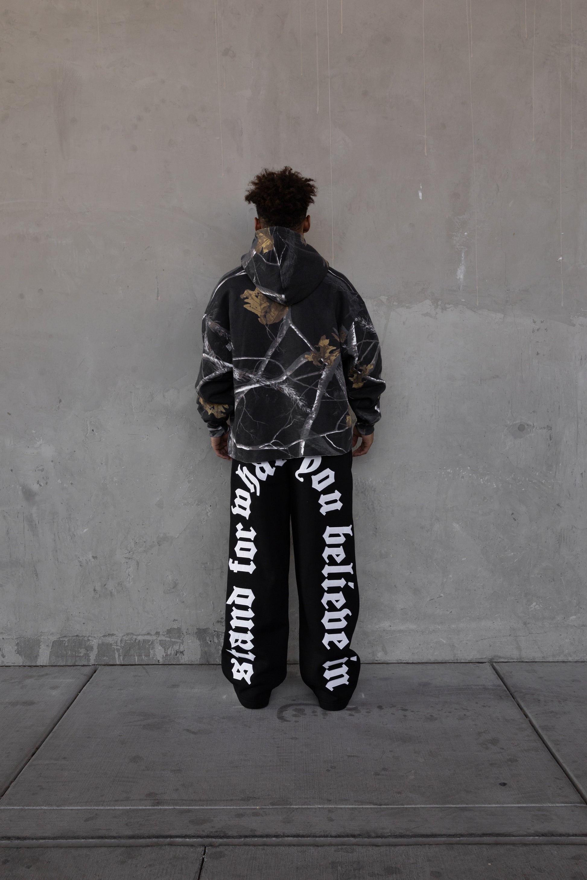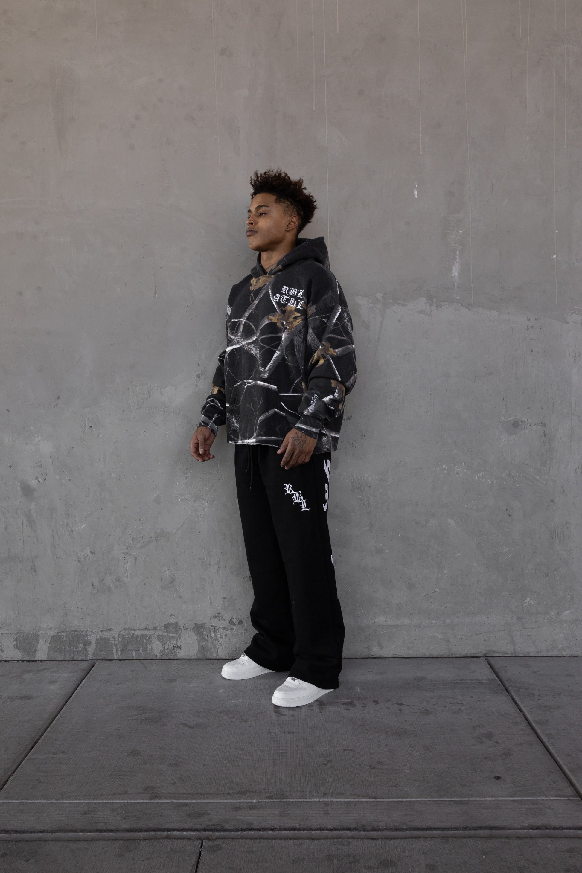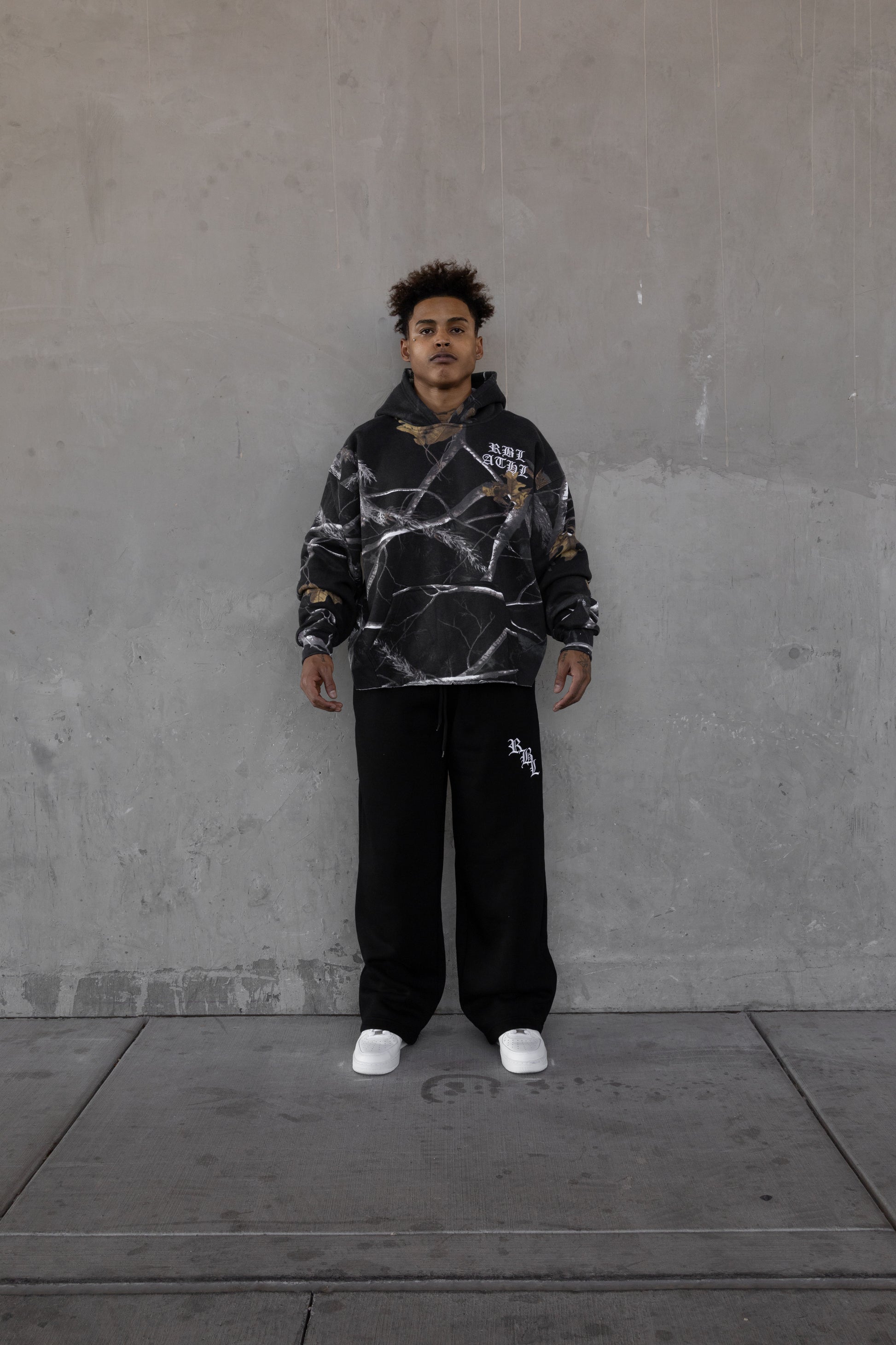Rebeletics Cropped Tree Camo Hoodie - Shadow Black